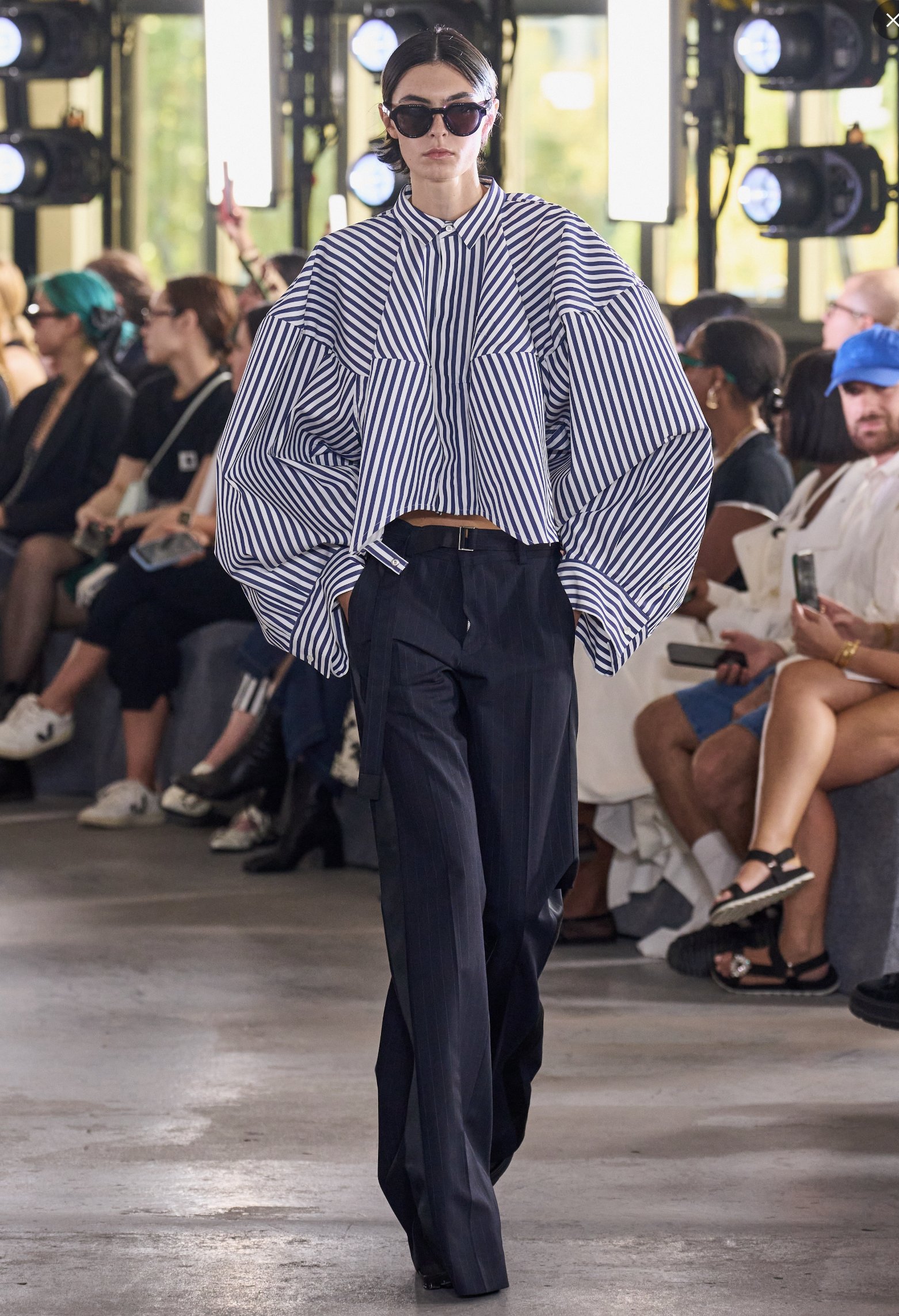 Chitose Abe, co-founder of Sacai, brought the big energy (quite literally) to Paris Fashion Week. For their Spring/Summer 2024, the designer has chosen to explore the idea that “the more simple we are, the more complete we become”. The French sculptor Auguste Rodin's remarks were clearly echoed in Sacai's Spring collection. Sacai's runway showcased Abe's mastery in crafting innovative shapes and silhouettes that artfully manipulate the human form, whilst curating movements within the pieces. Notably recognised for her penchant for turning fashion shows into immersive art galleries, Chitose, in a previous season, transformed a car park into a captivating runway for her Autumn/Winter collection.